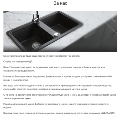За да подобрят бързината и надеждността на предоставяната информация, производителите локализират отделите за дистрибуция и производство на едно място. Благодарение на присъствието на отдела за обслужване на клиенти директно в същата сграда, където е производството, ние получаваме достъп до напредналите познания на инженерите, проектиращи въпросната мивка. Заслужава да се отбележи и нарастващото търсене на онлайн магазини напоследък. От съображения за безопасност за здравето онлайн магазините успяха да видят колосално увеличение на броя на покупките напоследък и да докажат на много от опонентите си, че интернет е надежден, професионален и безопасен източник на пазаруване.