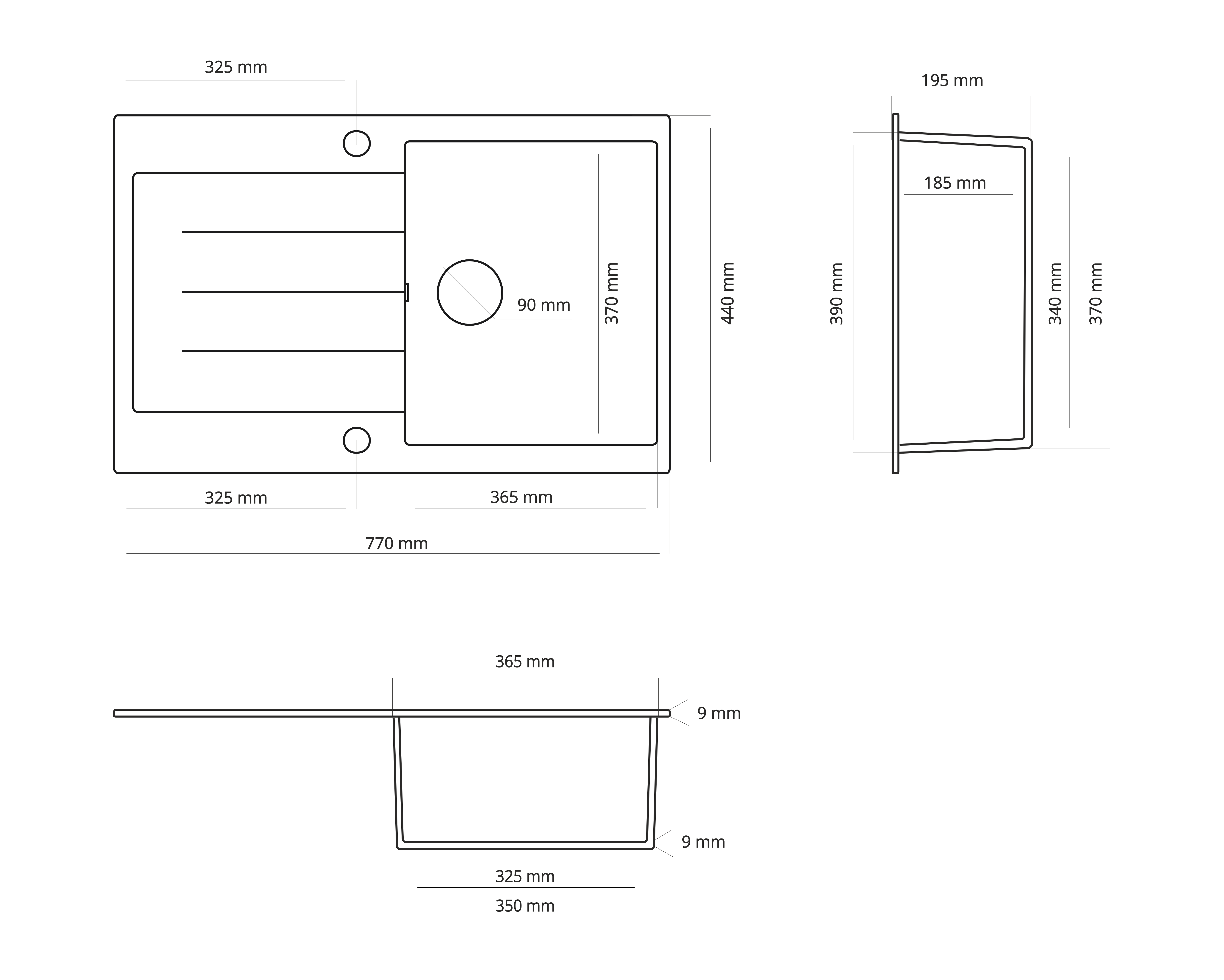 Промоционалният комплект включва гранитна мивка Lavello Master 1.0, смесител от неръждаема стомана Noemi, класически сифон и капачка.