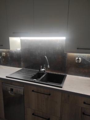 Ако искате вашето кухненско пространство да е елегантно и естествено красиво – можете да изберете покритие от естествен камък. Този материал ще запълни пространството между плота и стенните шкафове с изисканост и забележителна естетика.